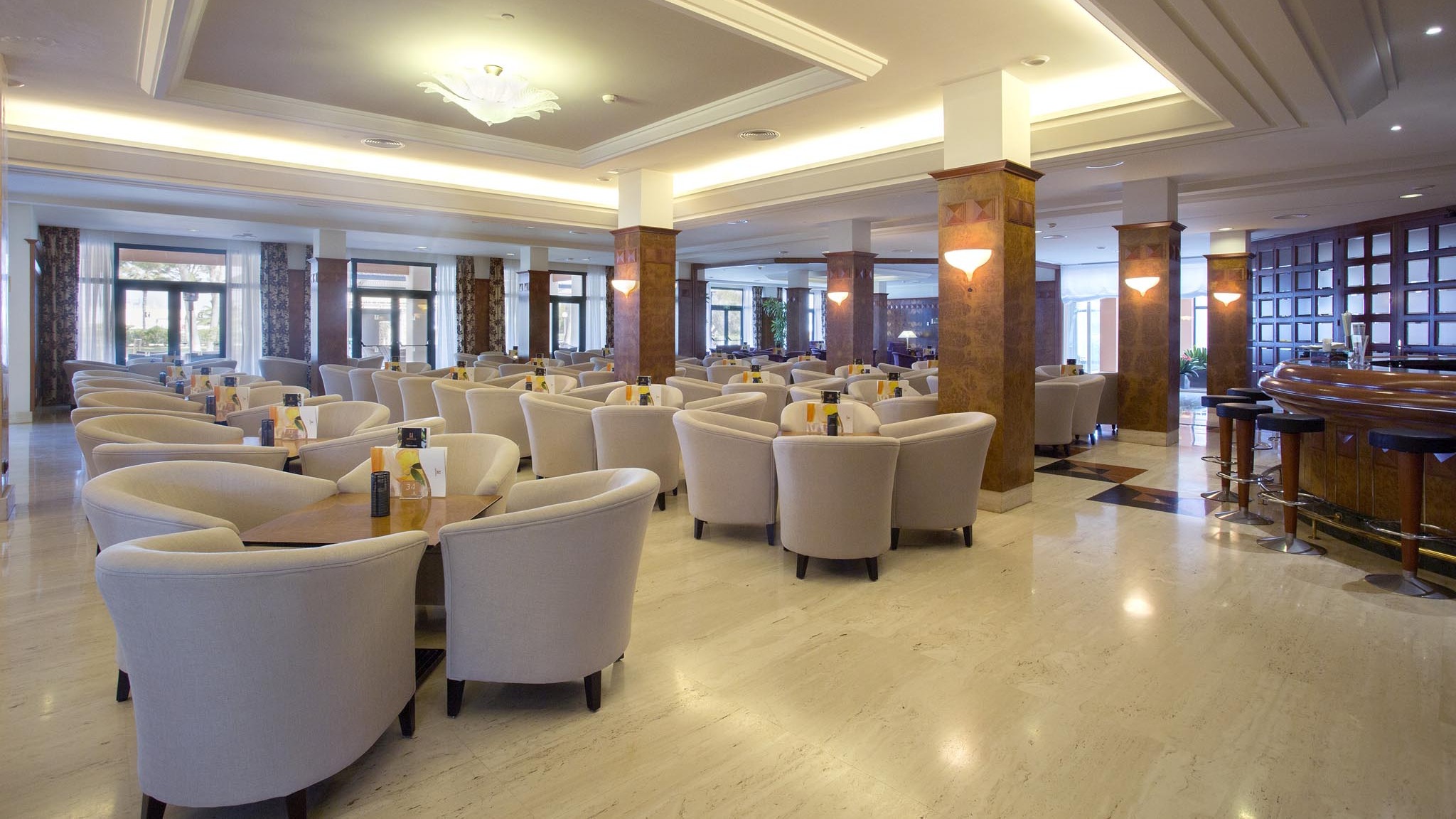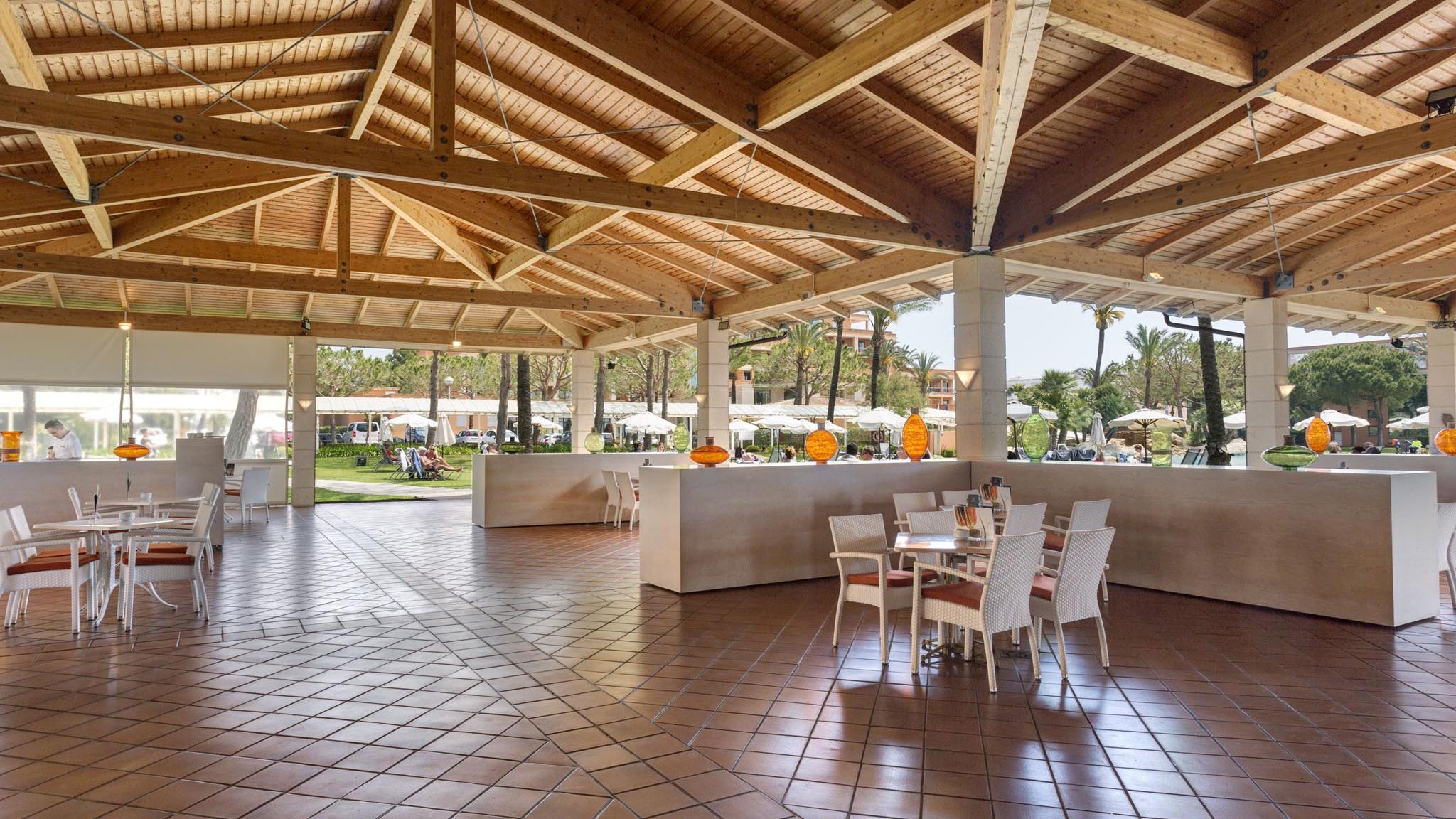 Das sehr beliebte und erstklassige Hipocampo Palace besteht aus zwei Gebäuden mit 4 bzw. 5 Etagen. Im vorderen Gebäude befindet sich die schöne, parkähnliche Gartenanlage, das Hauptrestaurant mit Aussenterrasse und ausgezeichneter, internationaler Küche. Beim Nebengebäude befinden sich die Tennisplätze, der grosse Swimmingpool mit Schwimmbecken für Kinder.